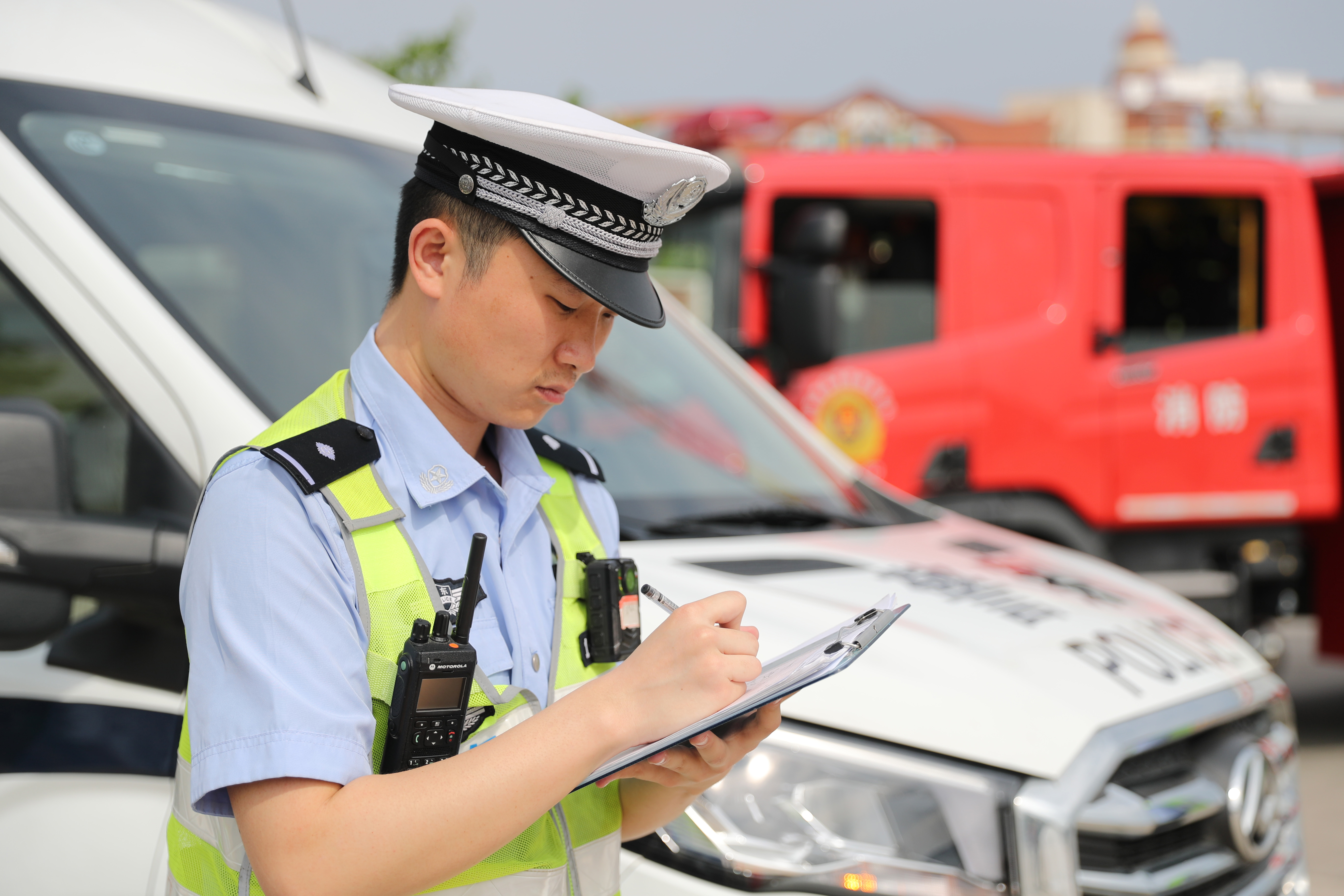 5月30日,交警在演練現(xiàn)場(chǎng)做案情記錄。(張進(jìn)剛 攝)