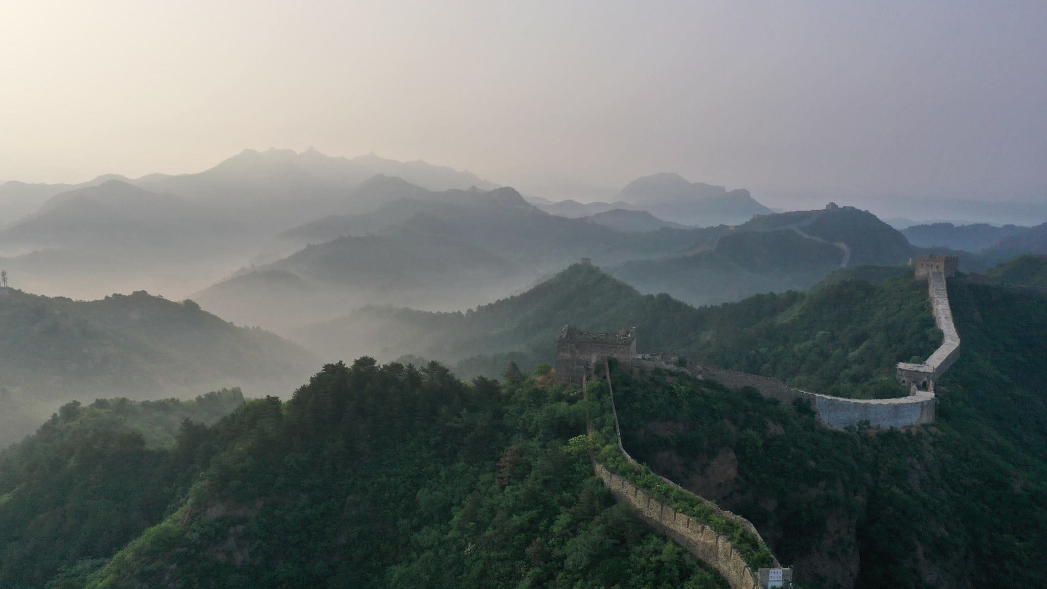 河北承德:清晨金山嶺長城霧氣升騰