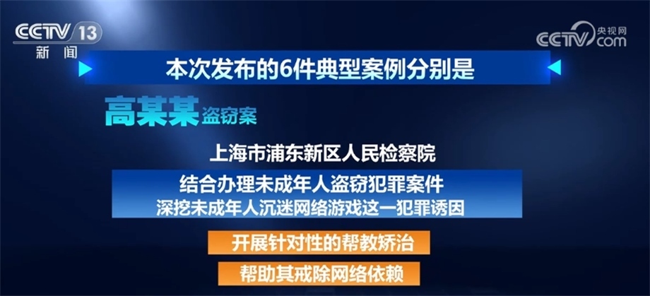 高某某盜竊案。上海市浦東新區(qū)人民檢察院結(jié)合辦理未成年人盜竊犯罪案件,深挖未成年人沉迷網(wǎng)絡(luò)游戲這一犯罪誘因,開(kāi)展針對(duì)性的幫教矯治,幫助其戒除網(wǎng)絡(luò)依賴(lài)。