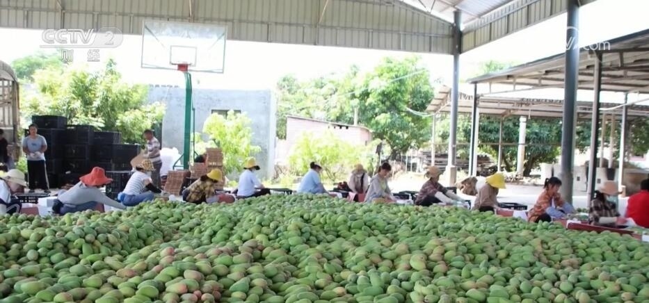 每天早上八點以后,新平縣漠沙鎮(zhèn)曼勒社區(qū)的芒果交易市場開始熱鬧起來。果農(nóng)將芒果運(yùn)到市場進(jìn)行售賣,空氣中彌漫著濃濃的芒果香味。在曼線村,收購點的芒果堆成了“小山”,包裝好的芒果整整齊齊地排列在車廂里,即將被運(yùn)送到全國市場。