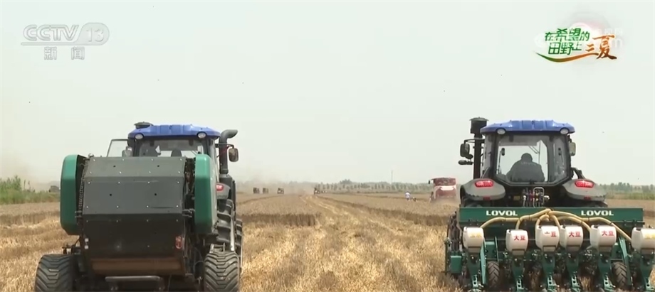 當(dāng)然,確保顆粒歸倉,除了要減損,更要及時(shí)搶收。今年麥?zhǔn)掌陂g,當(dāng)?shù)赜錾狭撕币姷慕涤晏鞖猓?日開始預(yù)計(jì)還會(huì)有一輪降雨,所以大比武的同時(shí),搶收也在抓緊進(jìn)行,大家要抓緊這幾天的窗口期,進(jìn)行24小時(shí)的搶收作業(yè)。農(nóng)業(yè)專家告訴我,在當(dāng)?shù)?,降雨?duì)于麥?zhǔn)盏挠绊懹袃牲c(diǎn),一個(gè)是土地變得潮濕松軟,大型機(jī)械下地難。針對(duì)這點(diǎn),當(dāng)?shù)匾膊扇×舜胧?,在一些土地還沒有干透的麥田里,我們看到有不少履帶式的收割機(jī),它們雖然體型稍小,但履帶可以避免陷入土地,還有一些無人駕駛的智慧農(nóng)機(jī),可以解決搶收時(shí)的人手問題。這些都是當(dāng)?shù)剞r(nóng)業(yè)部門按照農(nóng)戶需求及時(shí)幫助調(diào)配的。目前,阜南全縣投入聯(lián)合收割機(jī)4300多臺(tái),組建了搶收服務(wù)隊(duì)76個(gè)、農(nóng)機(jī)維修服務(wù)隊(duì)28個(gè),將爭取在5天內(nèi)完成全部麥?zhǔn)铡?/p>