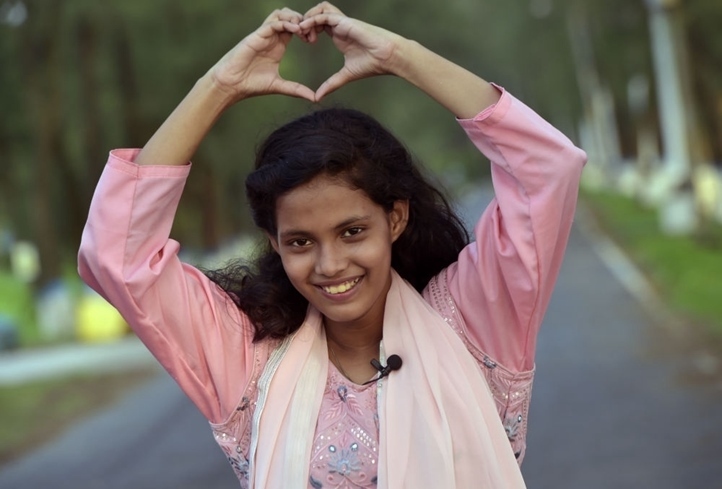 2023年5月26日,沁在孟加拉國做出愛心手勢表達(dá)對中國的愛意。新華社發(fā)