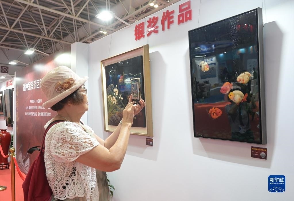 當(dāng)日,第十屆中國(福州)金魚文化節(jié)在福州海峽國際會展中心舉行,金魚與以金魚為題材的福州傳統(tǒng)漆藝作品同場斗艷,展區(qū)內(nèi)除展示第六屆中國(福州)金魚大賽獲獎的金魚外,還展示了首屆福州“金魚”漆藝創(chuàng)新大賽的近百件作品。新華社記者 林善傳 攝