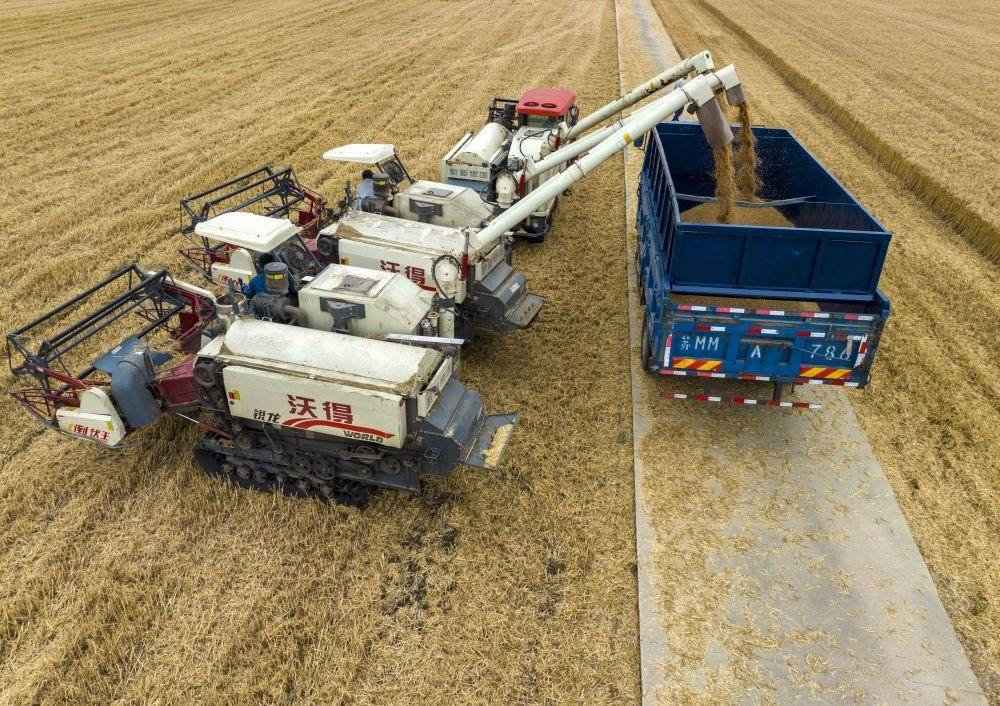 在湖北,棗陽(yáng)市農(nóng)業(yè)綜合執(zhí)法大隊(duì)三中隊(duì)中隊(duì)長(zhǎng)王富鋒介紹,自5月15日小麥開鐮收割以來(lái),全市共組織本地稻麥聯(lián)合收割機(jī)7445臺(tái)、外來(lái)跨區(qū)作業(yè)收割機(jī)1400多臺(tái),展開機(jī)收大會(huì)戰(zhàn),確保小麥機(jī)收率99%以上。