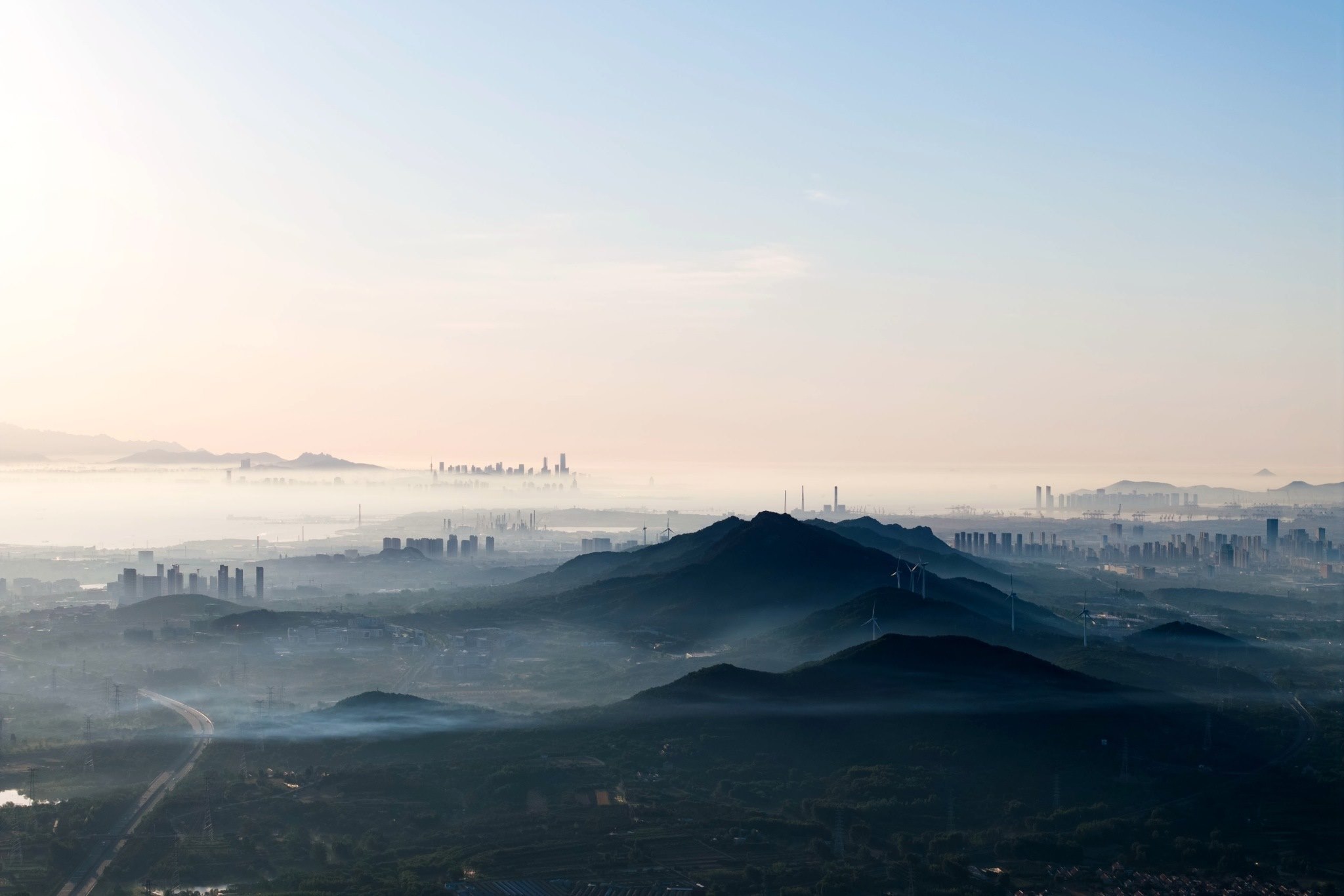 2023年6月3日,青島,膠州灣畔晨景如畫。視覺中國(guó)