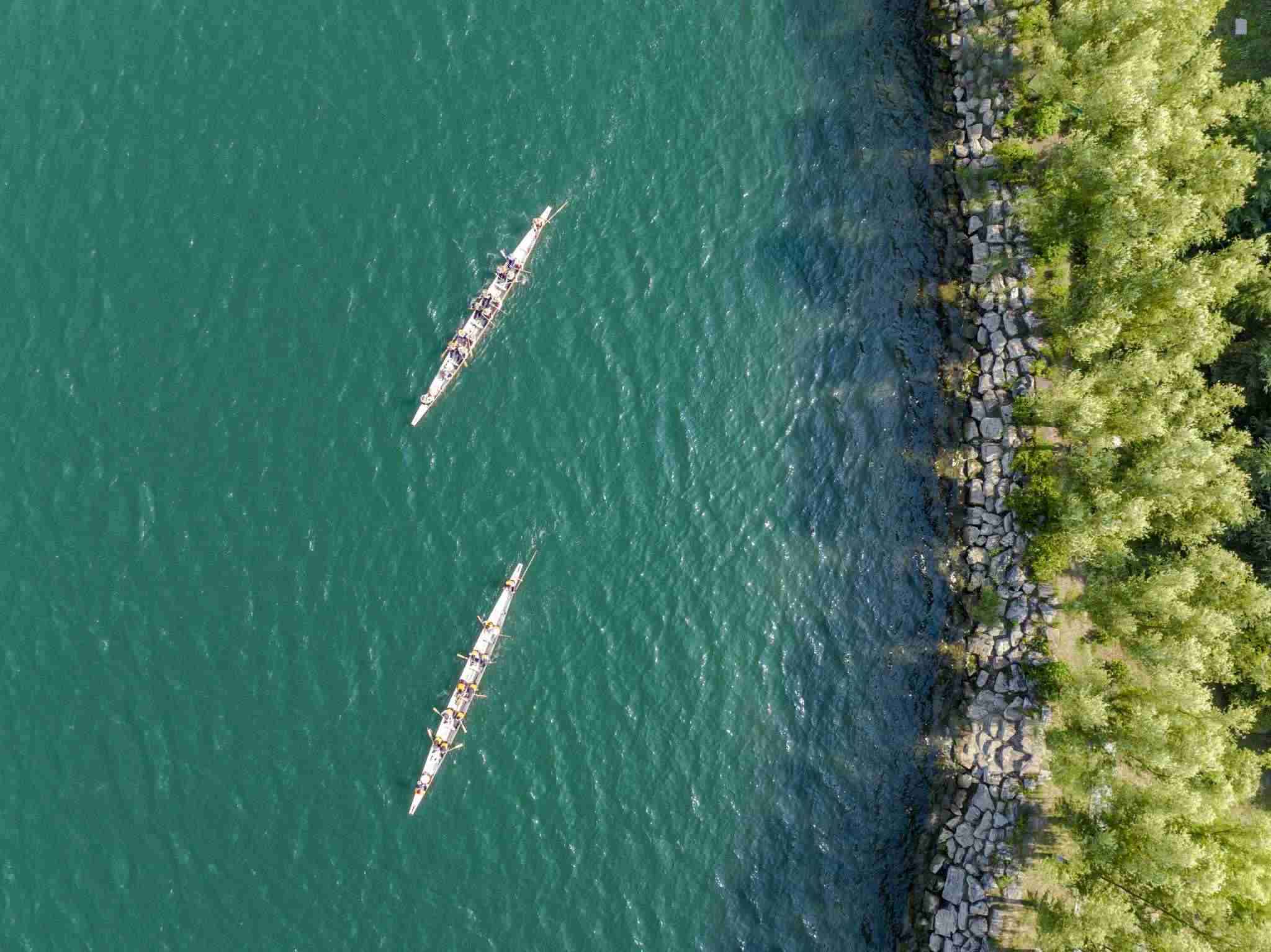 2023年6月8日,江蘇連云港,東??h西雙湖風(fēng)景區(qū),多支龍舟隊在西雙湖水域進(jìn)行訓(xùn)練,積極備戰(zhàn)端午龍舟賽。視覺中國