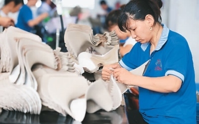 今年以來(lái),福建省福州市倉(cāng)山區(qū)持續(xù)優(yōu)化營(yíng)商環(huán)境,進(jìn)一步加大出口退稅支持力度,為企業(yè)提供精準(zhǔn)服務(wù),助力出口外貿(mào)企業(yè)積極開(kāi)拓海外市場(chǎng)。圖為倉(cāng)山區(qū)一家鞋企生產(chǎn)車間內(nèi),工人在生產(chǎn)出口女靴。