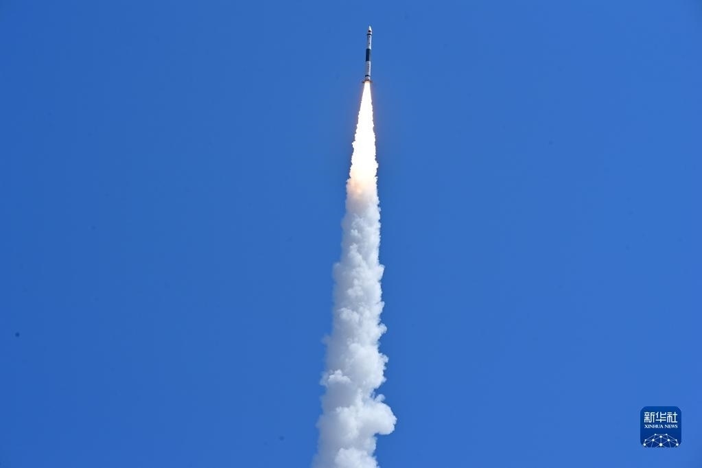 6月9日10時(shí)35分,我國(guó)在酒泉衛(wèi)星發(fā)射中心使用快舟一號(hào)甲運(yùn)載火箭,成功將龍江三號(hào)試驗(yàn)衛(wèi)星發(fā)射升空,衛(wèi)星順利進(jìn)入預(yù)定軌道,發(fā)射任務(wù)獲得圓滿(mǎn)成功。新華社發(fā)(李昀錫 攝)