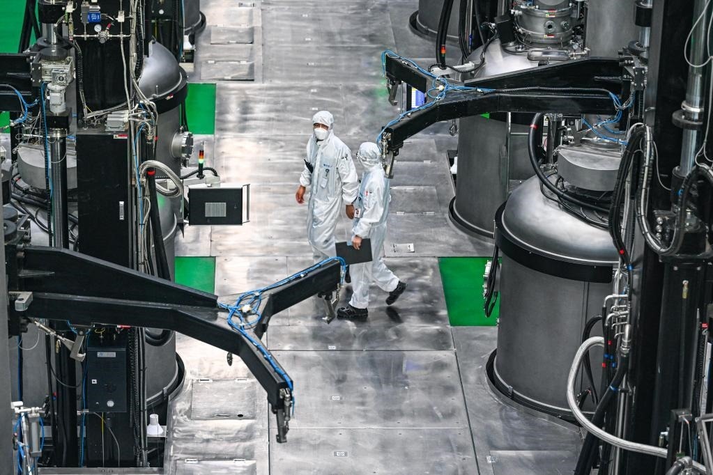 6月7日,工人在中環(huán)產(chǎn)業(yè)園中的單晶車間內(nèi)工作。新華社記者 彭源 攝