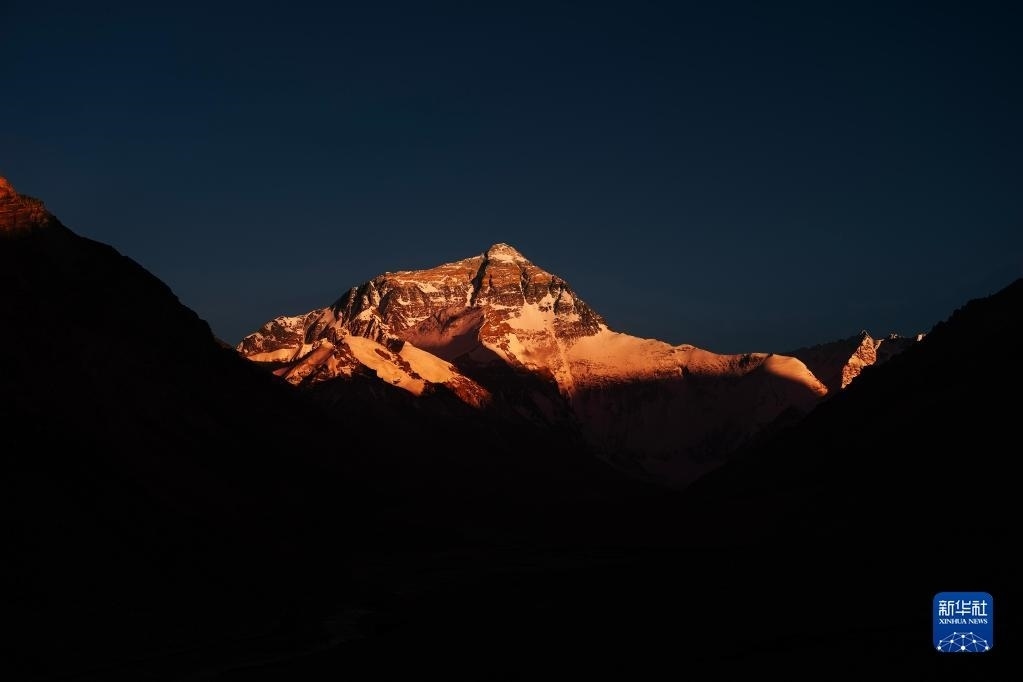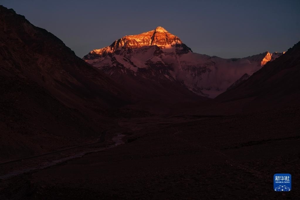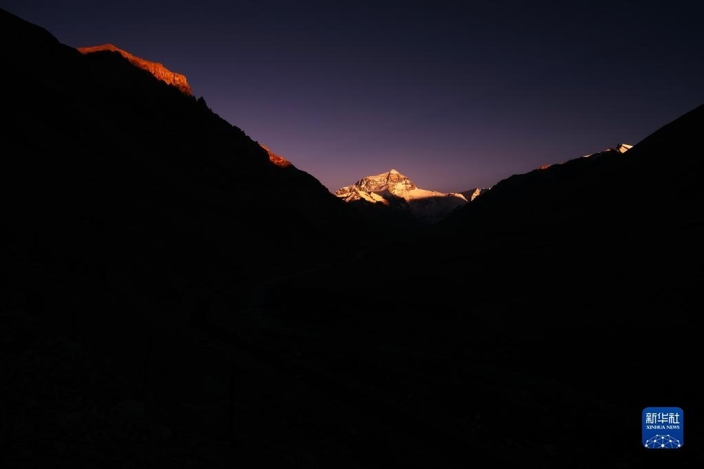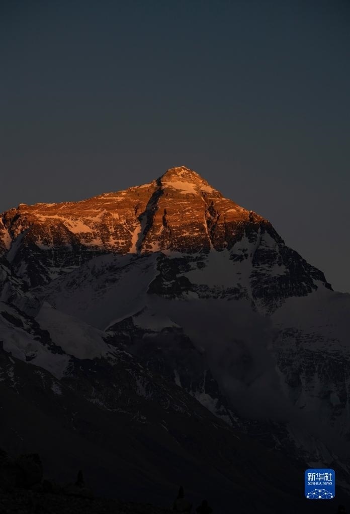 6月4日,最后一抹陽(yáng)光即將從珠峰頂上消逝。