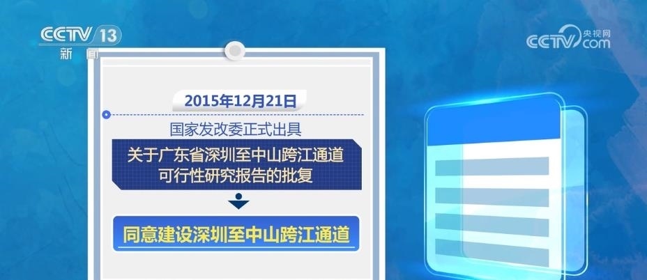 2015年12月21日,國(guó)家發(fā)展改革委正式出具關(guān)于廣東省深圳至中山跨江通道可行性研究報(bào)告的批復(fù),同意建設(shè)深圳至中山跨江通道。