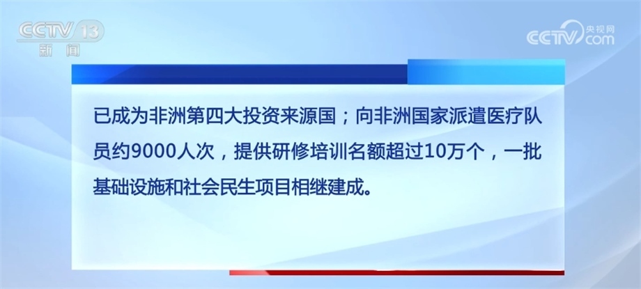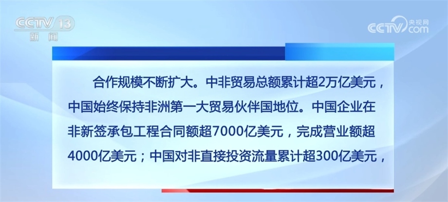 合作規(guī)模不斷擴(kuò)大。中非貿(mào)易總額累計超2萬億美元,中國始終保持非洲第一大貿(mào)易伙伴國地位。中國企業(yè)在非新簽承包工程合同額超7000億美元,完成營業(yè)額超4000億美元;中國對非直接投資流量累計超300億美元,已成為非洲第四大投資來源國;向非洲國家派遣醫(yī)療隊員約9000人次,提供研修培訓(xùn)名額超過10萬個,一批基礎(chǔ)設(shè)施和社會民生項目相繼建成。