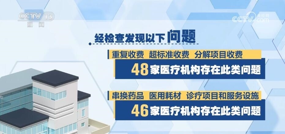 國(guó)家飛檢組共抽查了48家定點(diǎn)醫(yī)療機(jī)構(gòu),包括三級(jí)公立醫(yī)院40家、三級(jí)民營(yíng)醫(yī)院3家、二級(jí)以下民營(yíng)醫(yī)療機(jī)構(gòu)5家,經(jīng)檢查發(fā)現(xiàn)以下問題:一、重復(fù)收費(fèi)、超標(biāo)準(zhǔn)收費(fèi)、分解項(xiàng)目收費(fèi),48家醫(yī)療機(jī)構(gòu)存在此類問題。二、串換藥品、醫(yī)用耗材、診療項(xiàng)目和服務(wù)設(shè)施,46家醫(yī)療機(jī)構(gòu)存在此類問題。三、將不屬于醫(yī)?;鹬Ц斗秶尼t(yī)藥費(fèi)用納入醫(yī)?;鸾Y(jié)算,43家醫(yī)療機(jī)構(gòu)存在此類問題。四、違反診療規(guī)范過度診療、過度檢查、超量開藥,39家醫(yī)療機(jī)構(gòu)存在此類問題。此外,部分醫(yī)療機(jī)構(gòu)存在分解住院,藥品、醫(yī)用耗材進(jìn)銷存不符,未嚴(yán)格執(zhí)行國(guó)家組織藥品耗材集中帶量采購(gòu)政策,按病種付費(fèi)模式下高靠病組、低標(biāo)準(zhǔn)入院等其他違法違規(guī)問題;一些醫(yī)療機(jī)構(gòu)存在虛構(gòu)醫(yī)藥服務(wù)項(xiàng)目問題。
