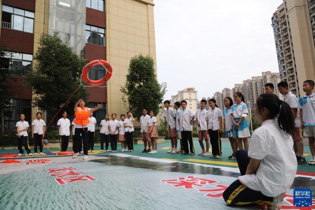 暑期臨近,江西省南昌市各縣區(qū)中小學校紛紛開展暑期安全教育主題活動,通過防溺水安全主題班會、安全知識培訓、自救技能培訓等方式提升學生的安全意識與防范危險能力,讓孩子們度過一個安全快樂的假期。新華社記者 彭昭之 攝