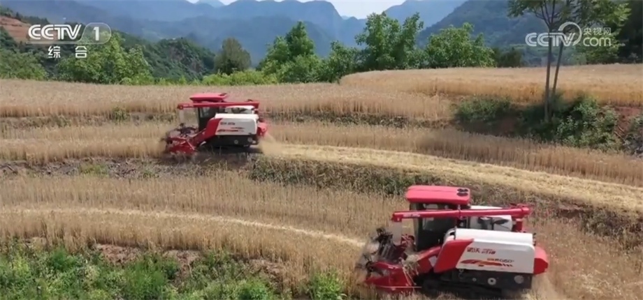 此外,還有更多適應(yīng)性能強的農(nóng)機裝備開進了以往機收率不高的地塊。在甘肅省徽縣,15萬畝小麥已陸續(xù)成熟?;湛h地處秦巴山,耕地大多以坡地為主。為了讓小麥顆粒歸倉,當(dāng)?shù)亟M織體型小、能爬坡過坎的履帶式聯(lián)合收割機開展機收作業(yè),機收率達到95%以上,打通了農(nóng)機進田“最后一公里”的難題。