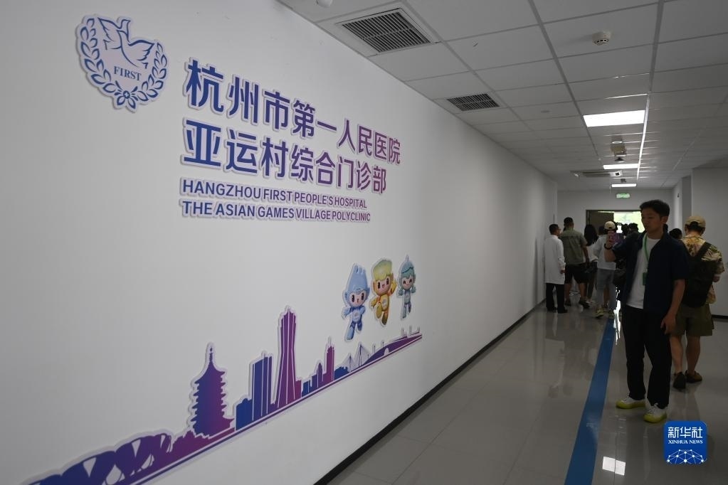 6月16日,媒體記者在亞運(yùn)村運(yùn)動(dòng)員村參觀綜合門診部。