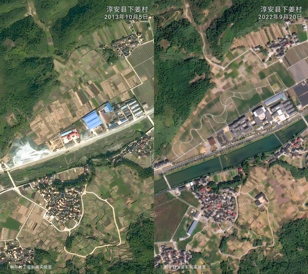 一組組衛(wèi)星對(duì)比圖見(jiàn)證了歲月流轉(zhuǎn)中的鄉(xiāng)村巨變。放眼浙江廣闊大地,這場(chǎng)跨越20年的美麗接力正煥發(fā)新的生機(jī)。