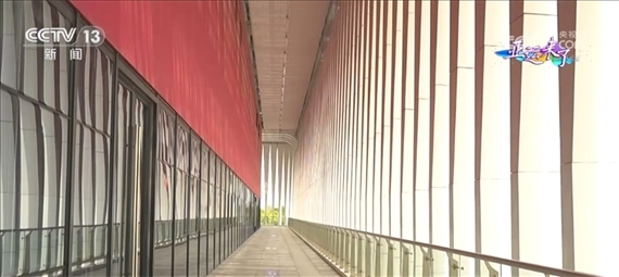 總臺(tái)央視記者 任梅梅:現(xiàn)在我們就來(lái)到了手球館室外的二層平臺(tái),進(jìn)入了“水?!钡膬?nèi)部,這一條條垂著的“水?!逼鋵?shí)不僅僅是裝飾品,更有著實(shí)際的作用,它們就像百葉窗一樣,能夠起到隔熱的效果,另外還可以減少眩光,提高室內(nèi)視覺(jué)的舒適度。