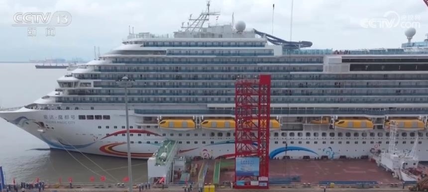 總臺央視記者 吳天白:這里就是郵輪的5甲板,我們可以看到首艘國產(chǎn)大型郵輪正在緩緩地駛向上海外高橋造船碼頭,準備靠泊。這次試航一共進行了振動噪聲、安全返港等90余項海試項目的測試、檢驗,試航圓滿成功,這也意味著“愛達·魔都號”郵輪的各項性能已基本具備運營條件。
