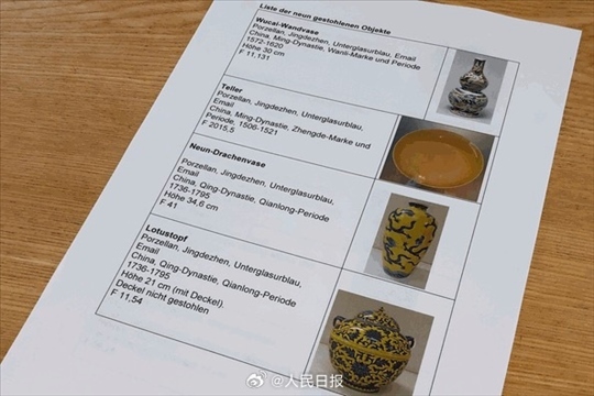 ·德國(guó)一家博物館9件中國(guó)明清瓷器被盜,價(jià)值超100萬(wàn)歐元。