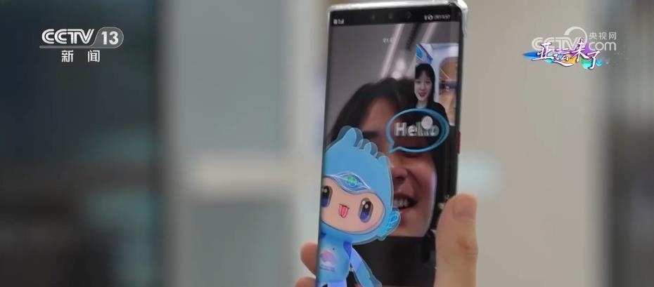 目前,“5G新通話”可實(shí)現(xiàn)中英雙語互譯。此外,大家看到屏幕里向我們揮手的亞運(yùn)吉祥物了嗎?這就是趣味通話的其中一個(gè)應(yīng)用場景。配合亞運(yùn)主題,研發(fā)人員設(shè)計(jì)了多種特定手勢(shì)識(shí)別,當(dāng)我們對(duì)著鏡頭打招呼或者比愛心的時(shí)候,就可以觸發(fā)趣味通話功能,亞運(yùn)吉祥物也能和我們同屏。