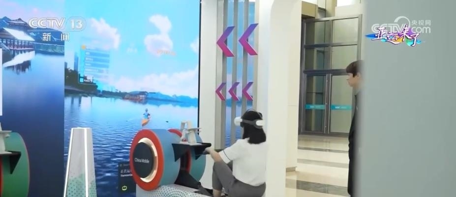 在5G和實(shí)時(shí)云渲染技術(shù)的支持下,配合劃船機(jī)和VR眼鏡,在主媒體中心就能實(shí)現(xiàn)“泛舟西湖”,沉浸式觀賞晴天、雨天等不同天氣情況下,西湖從斷橋到雷峰塔的沿湖美景。并列的兩臺(tái)劃船機(jī)還可以聯(lián)機(jī)比賽,讓體驗(yàn)者在西湖美景中享受運(yùn)動(dòng)和VR競技帶來的樂趣。