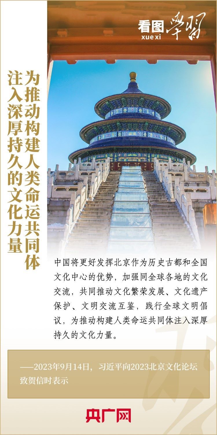 9月14日,以“傳承優(yōu)秀文化 促進(jìn)交流合作”為年度主題的2023北京文化論壇在北京開幕。習(xí)近平主席向論壇致賀信表示,中國將更好發(fā)揮北京作為歷史古都和全國文化中心的優(yōu)勢,加強同全球各地的文化交流,共同推動文化繁榮發(fā)展、文化遺產(chǎn)保護(hù)、文明交流互鑒,踐行全球文明倡議,為推動構(gòu)建人類命運共同體注入深厚持久的文化力量。