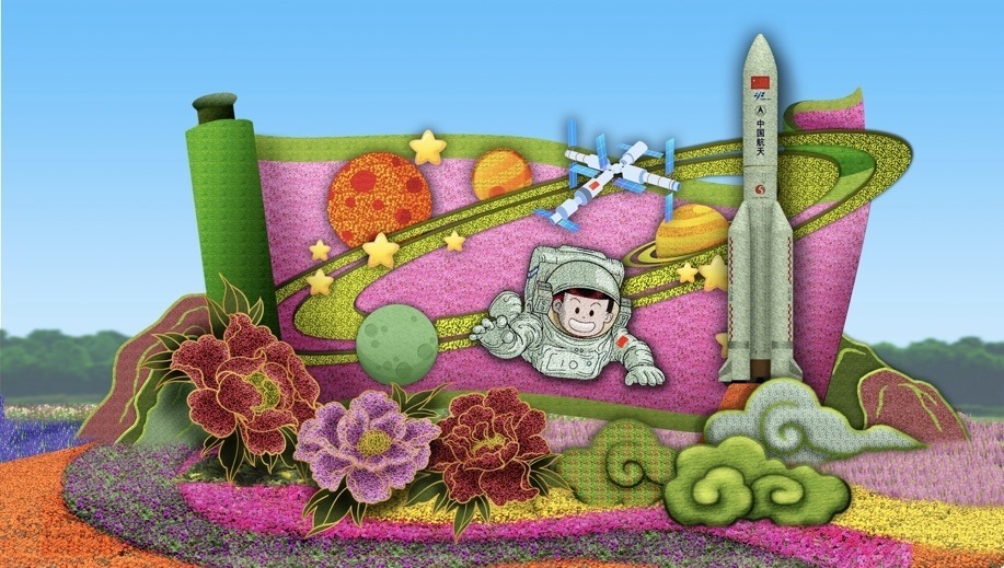 10,復(fù)興門東北角的“筑夢(mèng)未來”花壇頂高8.5米,以中國航天員、空間站為主景,寓意航天強(qiáng)國建設(shè)蓬勃發(fā)展,助力中國夢(mèng)早日實(shí)現(xiàn),全面推進(jìn)中華民族偉大復(fù)興,譜寫新時(shí)代中國特色社會(huì)主義更加絢麗的華章。