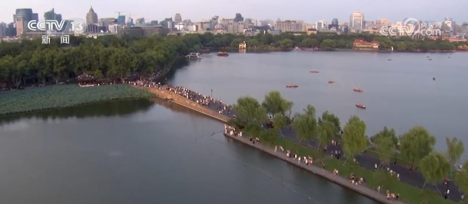 總臺(tái)記者 梁燁:說到浙江杭州,很多人第一印象就是西湖。雷峰塔是西湖南邊的最高塔,站在這里可以從南向北俯瞰到杭州西湖的全貌。