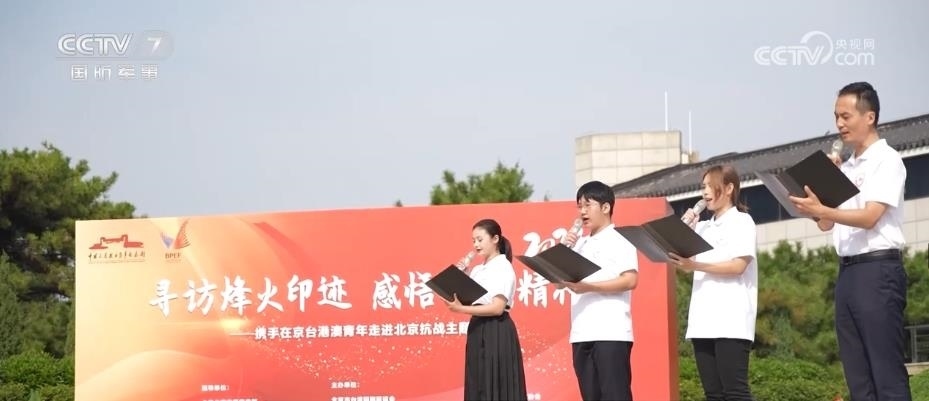 首都青年代表與在京臺港澳青年代表共同朗誦詩歌《為祖國而歌》《勿忘“九一八”》,表達中華兒女對祖國深沉而真摯的感情。