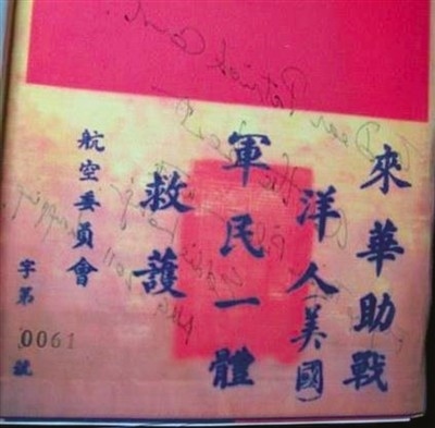 當(dāng)時(shí),每名飛虎隊(duì)隊(duì)員走向戰(zhàn)機(jī)時(shí),都深知自己或許永不能返航。他們身上都帶著寫(xiě)有“來(lái)華助戰(zhàn)洋人,軍民一體救護(hù)”的“血符”,這也是飛虎隊(duì)隊(duì)員與中國(guó)軍民之間的生死契約,一旦發(fā)現(xiàn)有落難的美軍飛行員,大家會(huì)不惜代價(jià),全力救助。