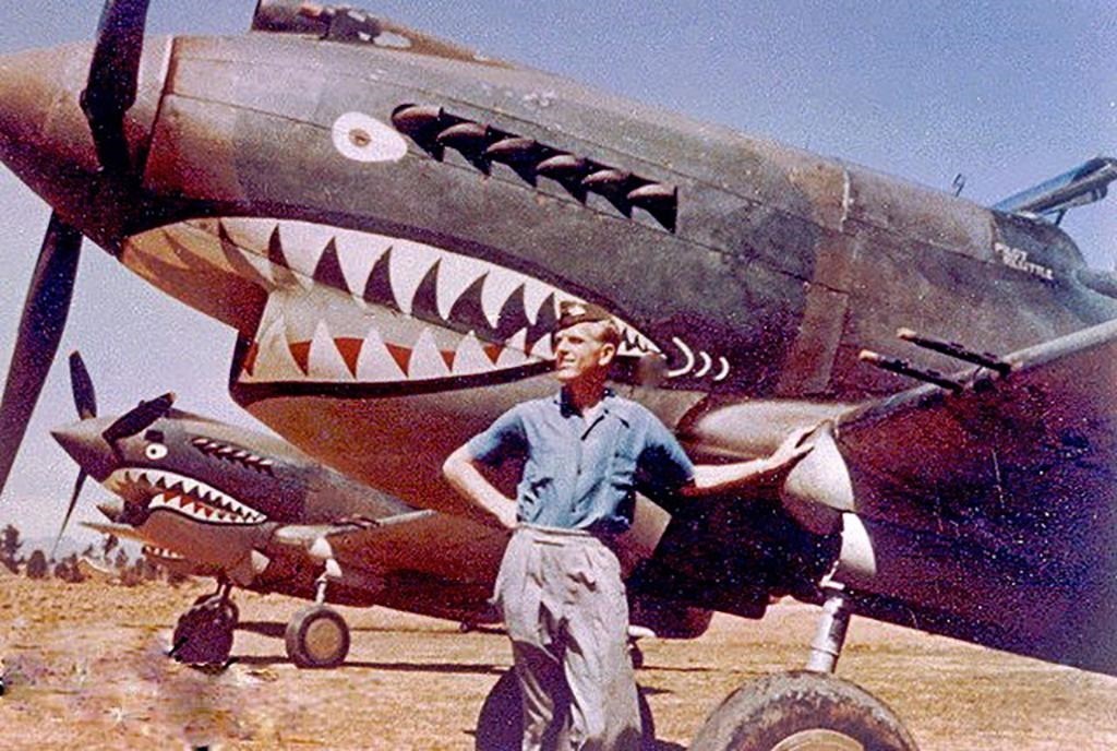 這是在二戰(zhàn)時(shí)期的昆明巫家壩機(jī)場(chǎng),一名飛虎隊(duì)隊(duì)員在涂裝有“鯊魚(yú)嘴”標(biāo)志的戰(zhàn)斗機(jī)前留影的資料照片。新華社發(fā)
