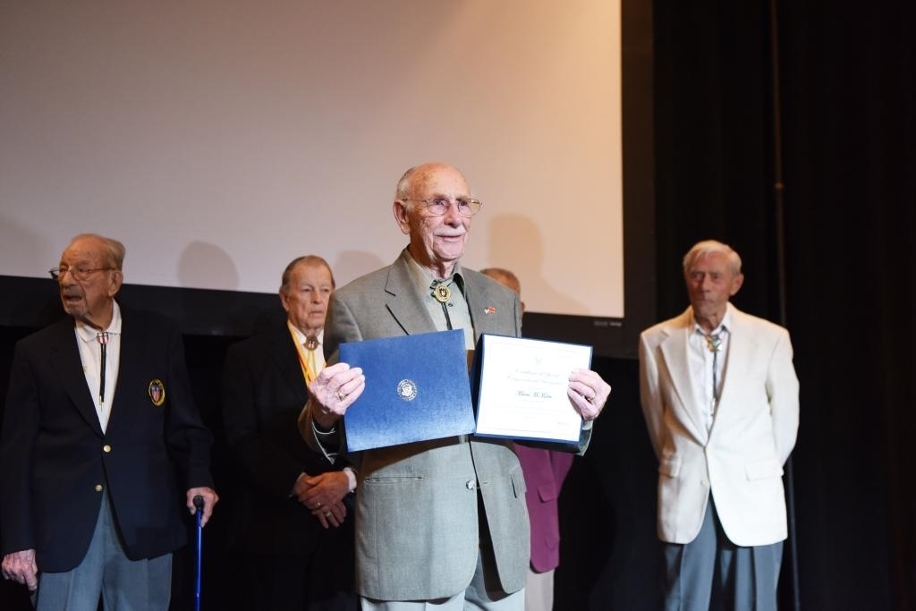 2019年5月11日,在美國(guó)拉斯維加斯舉行的中美二戰(zhàn)友誼暨飛虎隊(duì)歷史論壇上,飛虎隊(duì)老兵麥克馬倫(前)獲頒證書(shū)。