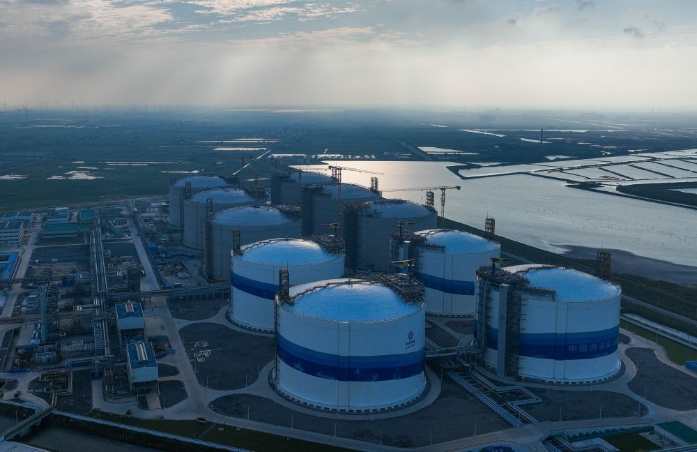 9月2日無人機(jī)拍攝的中國海油鹽城濱海LNG項(xiàng)目。