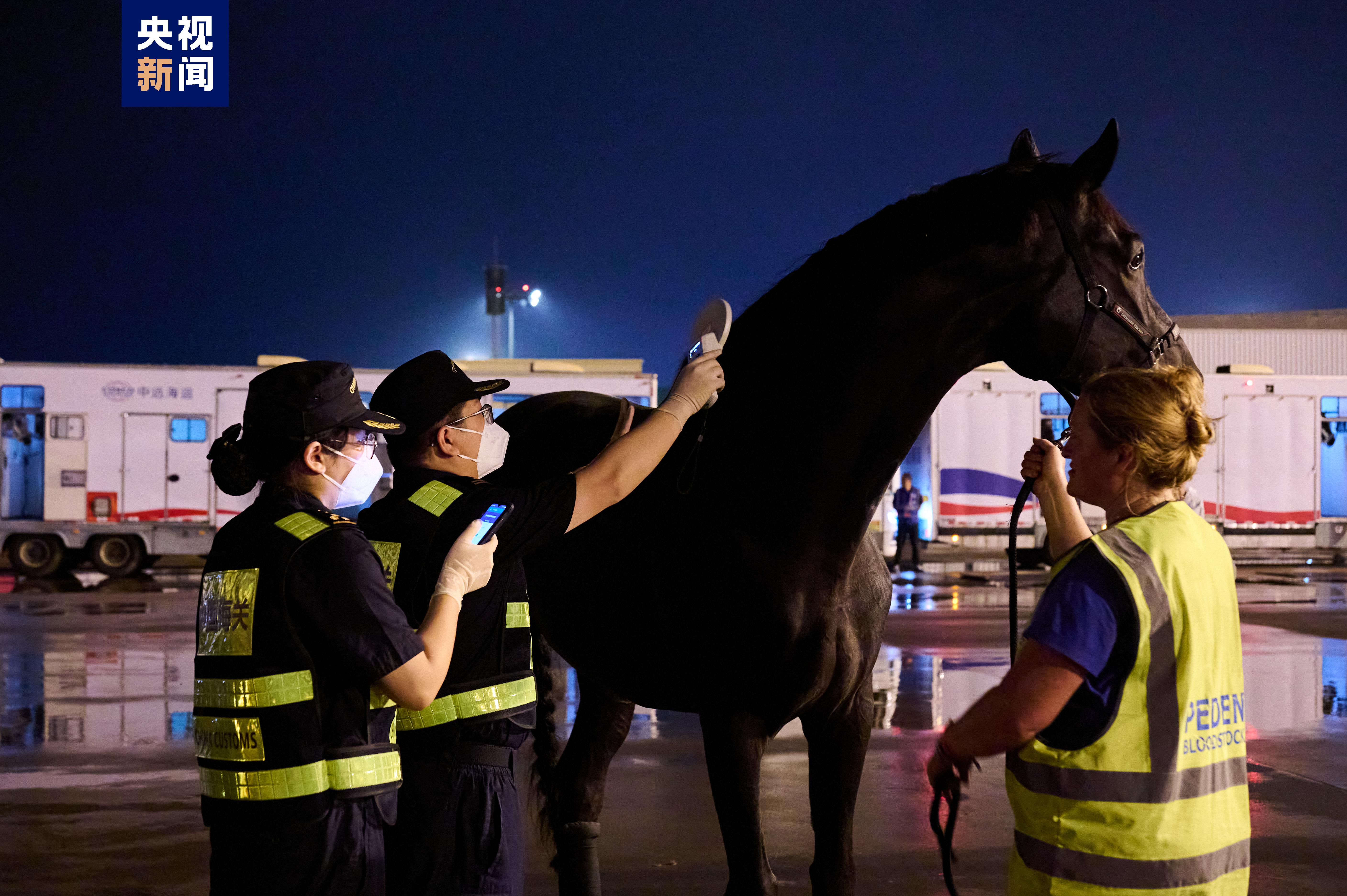 杭州亞運會賽事總指揮部馬術(shù)項目管理指揮中心相關(guān)負責人表示,“這些參賽馬經(jīng)過了十幾個小時的長途飛行,狀態(tài)比較疲憊,我們要在精準查驗、確保安全的同時,盡可能縮短通關(guān)轉(zhuǎn)運時間,保障馬匹福利?!睘榇耍贾菔捝絿H機場停機坪提前用圍擋設(shè)置了專門的馬匹裝卸轉(zhuǎn)運場地,完成場地消殺,專用運輸車輛和設(shè)備提前進入。海關(guān)就近設(shè)置隨機人員通關(guān)專用通道,縮短人、馬分離時間,保障隨機人員與參賽馬同步通關(guān),并創(chuàng)新開發(fā)參賽馬芯片識別程序,運用“賽馬檢疫在線”智慧監(jiān)管系統(tǒng)大幅提升參賽馬身份驗核效率。同時,通過優(yōu)化流程、協(xié)同運行,確保馬匹裝備、飼料、獸藥、馬醫(yī)療器械等隨機物資快速通關(guān)。參賽馬采用“快進快出”的方式,在同等動物衛(wèi)生條件下參賽,比賽結(jié)束后立即出境,實現(xiàn)賽馬“順利入境、健康參賽、安全返回”。