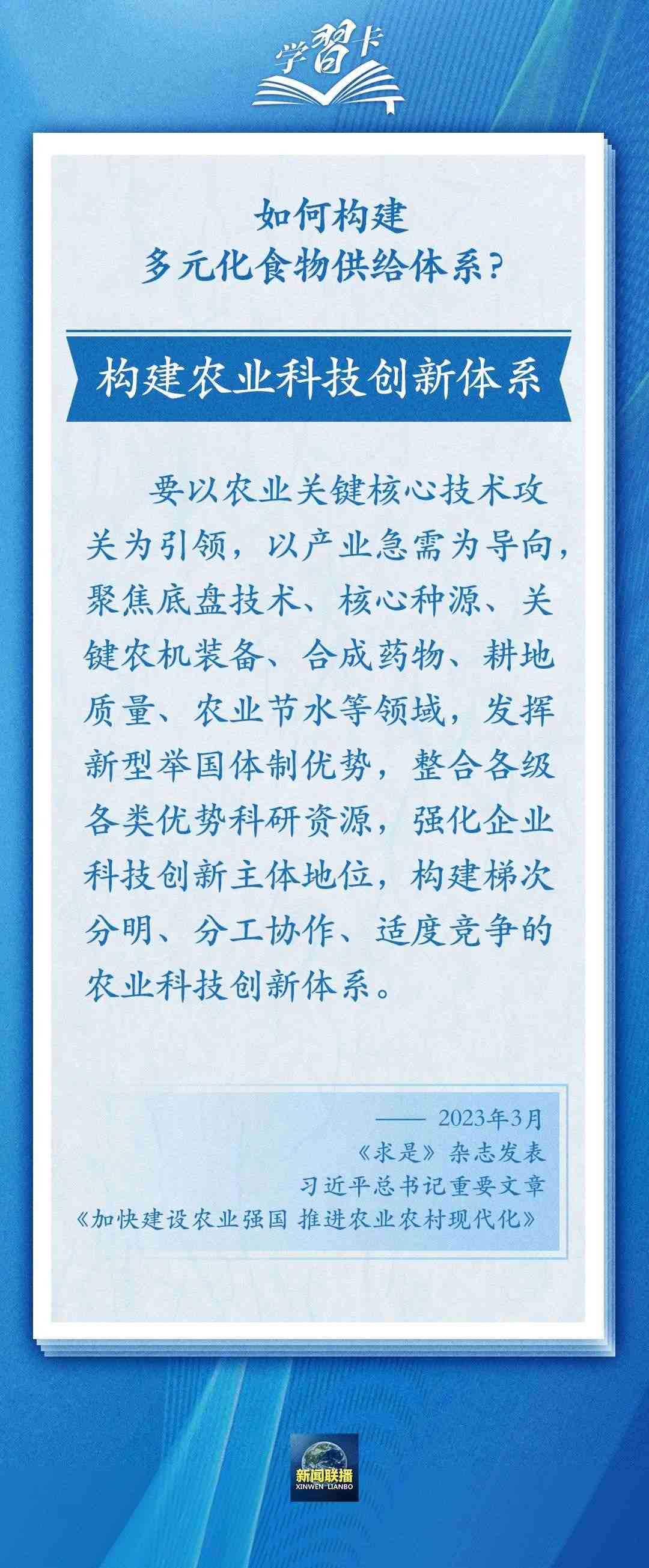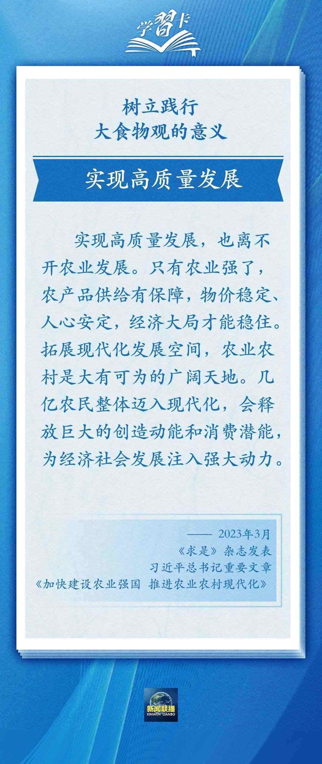 國以民為本,民以食為天。習近平總書記在黨的二十大報告中強調,全方位夯實糧食安全根基,樹立大食物觀,構建多元化食物供給體系,確保中國人的飯碗牢牢端在自己手中。