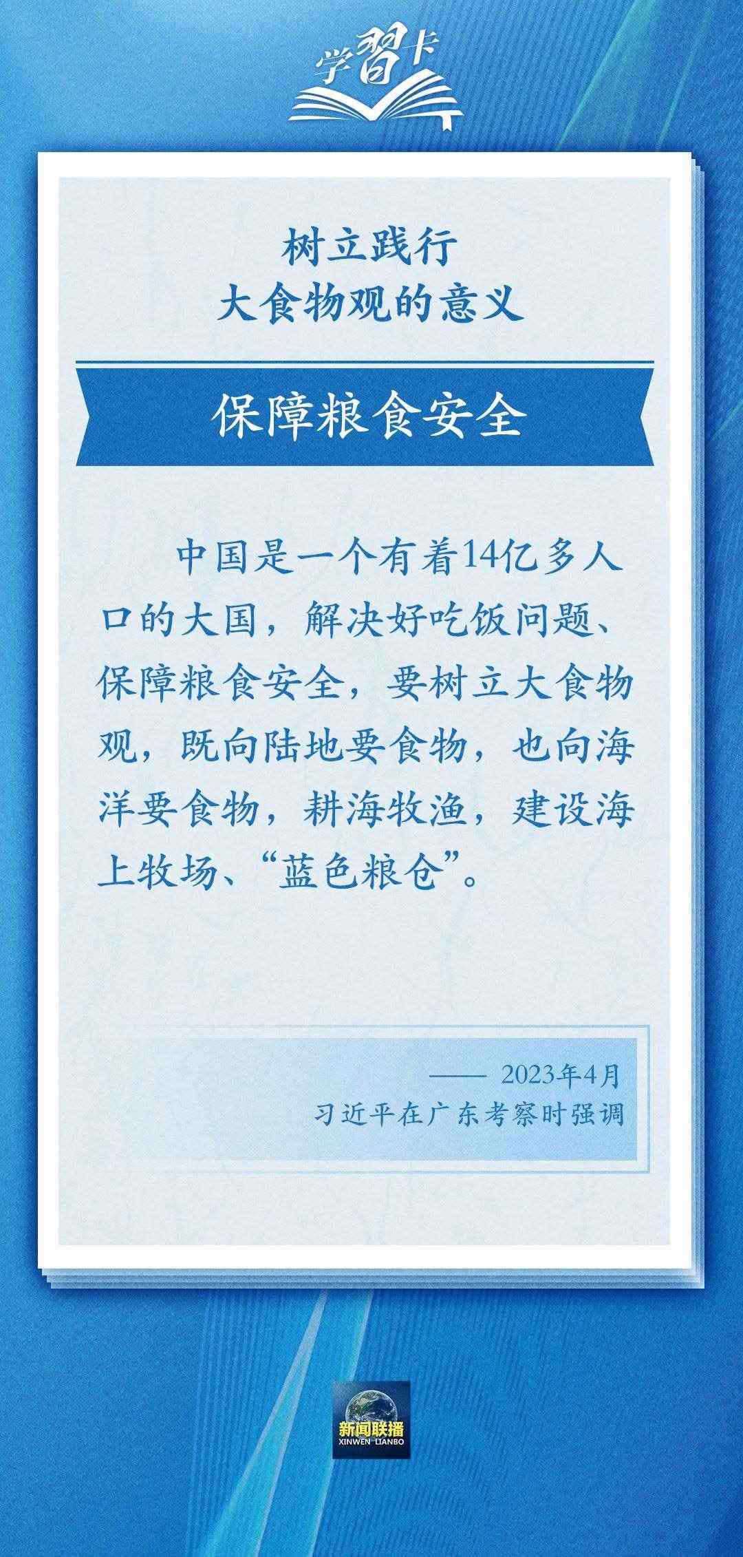 今年4月,總書記在廣東湛江考察時指出,要樹立大食物觀,既向陸地要食物,也向海洋要食物。前不久,總書記主持召開新時代推動東北全面振興座談會強調,踐行大食物觀,把農(nóng)業(yè)建成大產(chǎn)業(yè)。
