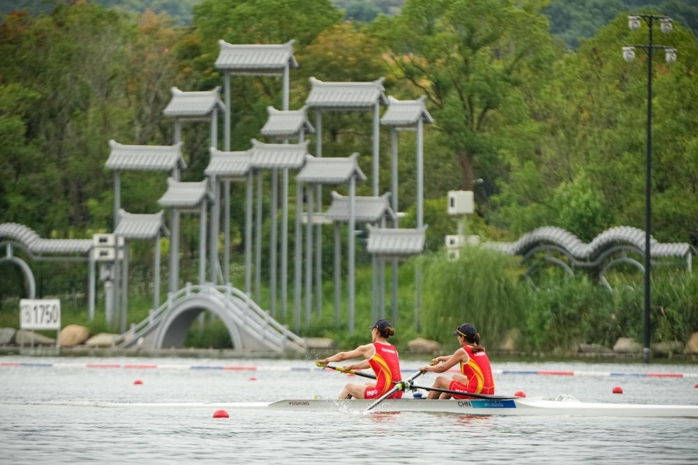 9月20日,杭州亞運會賽艇項目預賽比賽在浙江省杭州市富陽水上運動中心開賽。新華社記者 江漢 攝