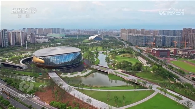 杭州亞運會運河體育公園指揮長馮晶:“亞運體育公園是按照綠色環(huán)保功能打造的,也是浙江省首座體育場館綠色三星級建筑。體育館的外立面采用陽極氧化鋁材料,在雨天有自清潔的功能,不用人工清洗外立面。透水混凝土在雨天有非常好的滲水功能,和我們的人工湖相結(jié)合,在晴天可以反哺草地,實現(xiàn)海綿城市的標準規(guī)范?!?/p>