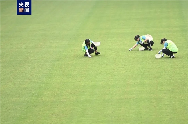 9月19日晚場(chǎng)比賽結(jié)束,運(yùn)動(dòng)員退場(chǎng)后,何東奇和草皮維護(hù)組的伙伴們立刻進(jìn)場(chǎng),開(kāi)始對(duì)整個(gè)場(chǎng)地的草坪進(jìn)行巡查修整。9個(gè)人一直工作到夜里12時(shí)多,完成了賽后草坪維護(hù)保養(yǎng)工作,“我回到駐地洗完澡休息已經(jīng)1:30了。”陳慶玉說(shuō)道。