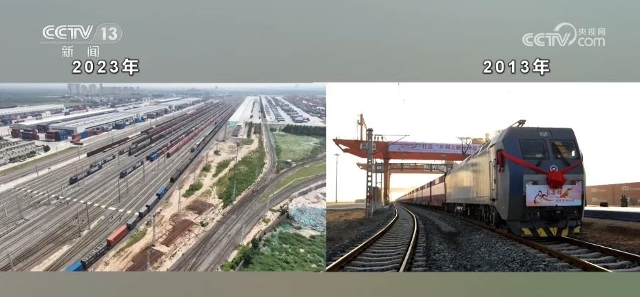 幾百輛剛出廠的新能源汽車整齊地排列在站臺(tái)上陸續(xù)裝箱,馬上它們將乘坐中歐班列“長(zhǎng)安號(hào)”前往中亞。2023年是“一帶一路”倡議提出10周年,也是中歐班列“長(zhǎng)安號(hào)”開行10周年。每天都有數(shù)以億計(jì)的貨物在這里集散。