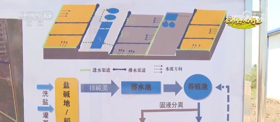 王永利說,通過淡水灌溉會將鹽堿田里的鹽和堿排出地塊,排出的鹽堿水通過一道道排水溝循環(huán)到蓄水池,最后被輸送到養(yǎng)殖池里養(yǎng)魚,養(yǎng)魚產生的排泄物經過過濾后回輸?shù)剿咎?,這樣的漁農綜合利用模式讓鹽堿地不斷變好。