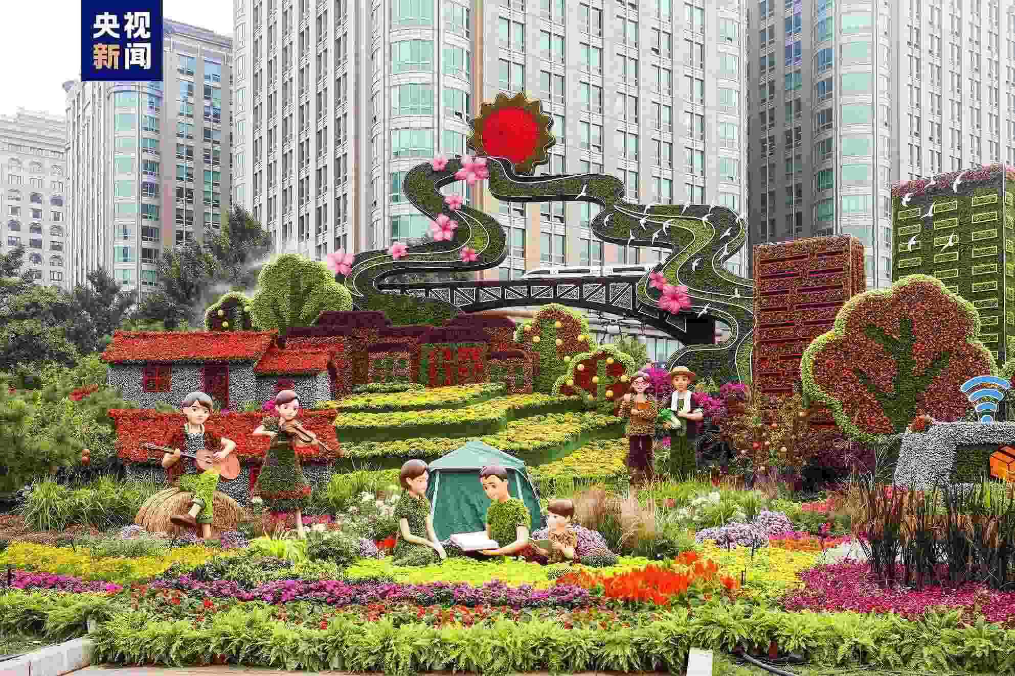 今年廣場花籃首次裝入象征豐收的五谷元素(水稻、小麥、小米、黃米、大豆),花籃內的花卉等部件均使用阻燃、抗風材料進行3D打印,有效保障安全性、穩(wěn)定性和觀賞性。廣場兩側綠地布置5050平方米吉祥如意花帶圖案,花球18個。長安街建國門至復興門之間布置10組不同主題的立體花壇,50多個國內自主知識產權新品種、國外引進新品種和鄉(xiāng)土植物在長安街花壇中首次應用,描繪出全面推進中華民族偉大復興的宏偉藍圖和人民群眾不斷提升的獲得感、幸福感的美好畫面。長安街、三里河路、阜成路、機場路四條重點道路布置容器花卉100組、地栽花卉2萬余平方米、花拱花球40余個,為市民游客營造花團錦簇的節(jié)日氛圍。