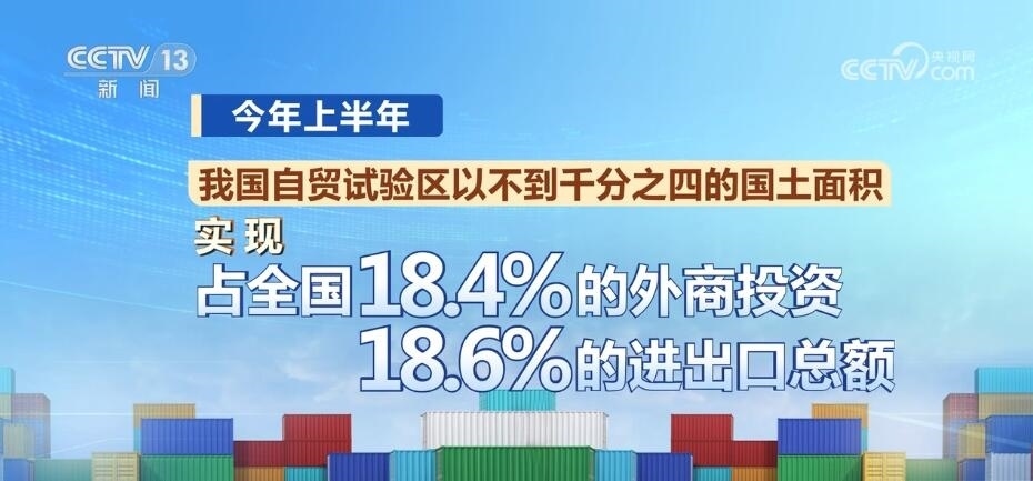 十年間,我國自貿(mào)試驗(yàn)區(qū)的總面積從不到30平方公里發(fā)展到3.8萬平方公里左右,涉及51個(gè)城市和海南島全島。今年上半年,我國自貿(mào)試驗(yàn)區(qū)以不到千分之四的國土面積,實(shí)現(xiàn)了占全國18.4%的外商投資和18.6%的進(jìn)出口總額,帶動(dòng)全國形成了覆蓋東西南北中、統(tǒng)籌沿海內(nèi)陸沿邊的改革開放創(chuàng)新格局。