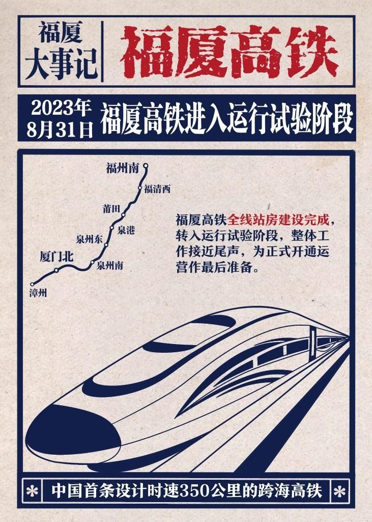 我國首條設(shè)計(jì)時(shí)速350公里的跨海高鐵——福廈高鐵正式開通運(yùn)營
