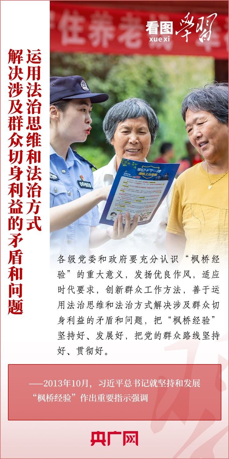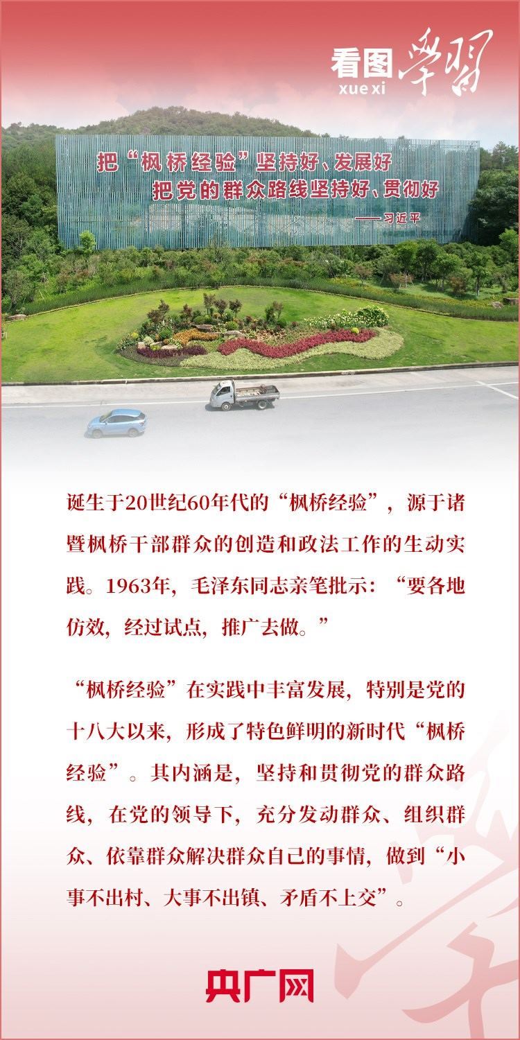 9月20日,習近平總書記在浙江考察,來到“楓橋經(jīng)驗”發(fā)源地諸暨市楓橋鎮(zhèn),參觀楓橋經(jīng)驗陳列館,強調(diào)要堅持好、發(fā)展好新時代“楓橋經(jīng)驗”。
