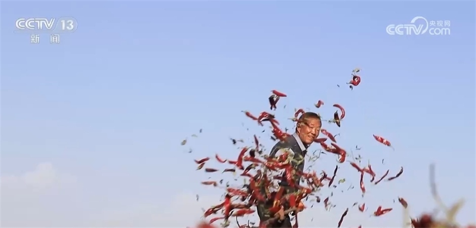 跟隨鏡頭,我們來(lái)到了新疆巴州和碩縣廣袤的戈壁灘上。眼下,50多萬(wàn)畝紅辣椒進(jìn)入全面采收晾曬季,放眼望去,一片片“紅色地毯”散發(fā)著熱辣的氣息。遍地的紅辣椒被有序鋪開(kāi),村民們穿梭其中,透著豐收的喜悅。當(dāng)?shù)剞r(nóng)業(yè)部門(mén)測(cè)算,今年當(dāng)?shù)乩苯樊a(chǎn)量可達(dá)140萬(wàn)噸以上,辣椒采收及晾曬工作將持續(xù)至11月前后。