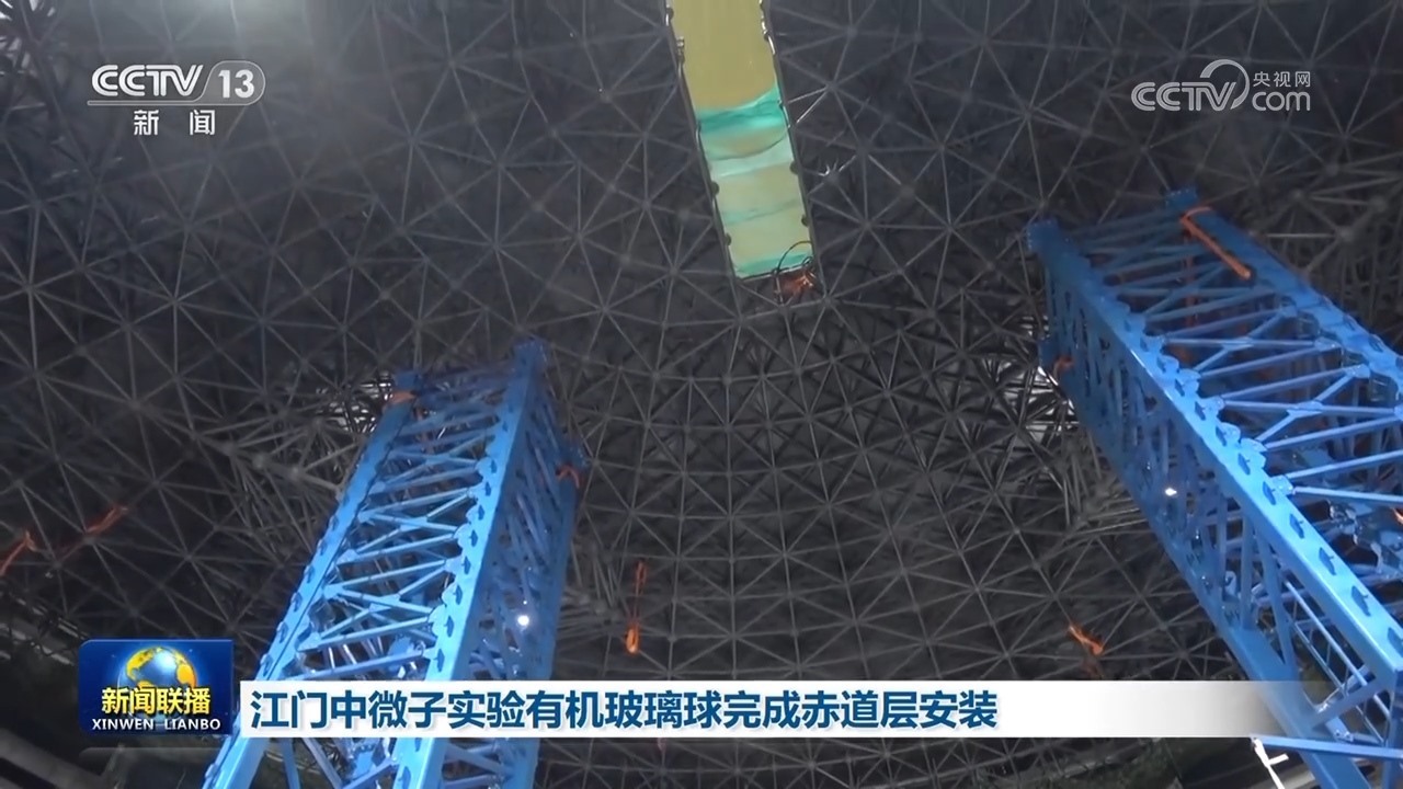 央視網(wǎng)消息(新聞聯(lián)播):大科學(xué)裝置江門(mén)中微子實(shí)驗(yàn)正在緊張建設(shè)中,位于地下700米的中心探測(cè)器日前完成了世界最大單體有機(jī)玻璃球赤道層的安裝,探測(cè)器整體工程過(guò)半。