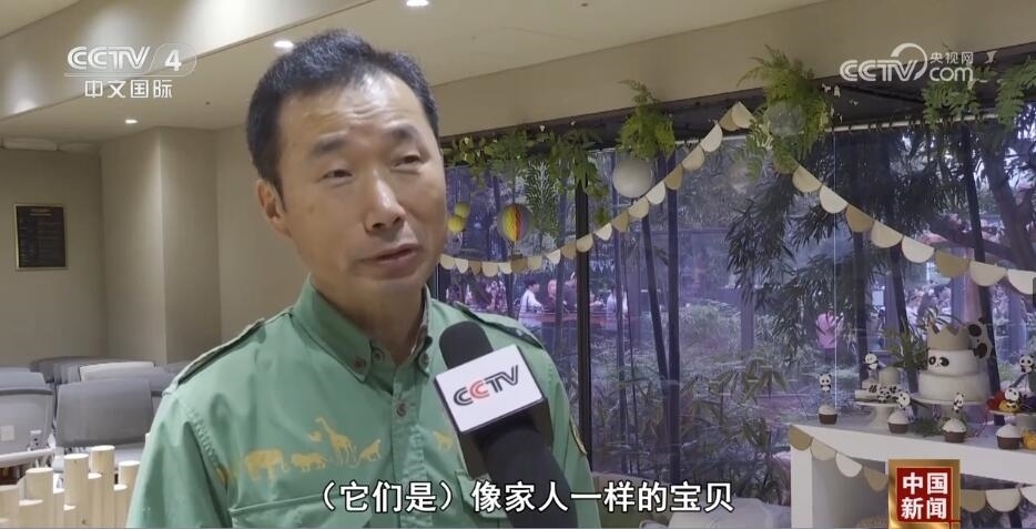 愛寶樂園熊貓館飼養(yǎng)員 姜哲遠(yuǎn):我們的“寶”家族真的有家人的感覺,首先愛寶、樂寶、福寶的名字都是有含義的,就像它們名字的意思一樣。它們是可愛,又給我?guī)砜鞓返膶毼铩⒖蓯鄣膶毼?,還有幸福的寶物。對我來說,就像它們的名字一樣,(它們是)像家人一樣的寶貝。