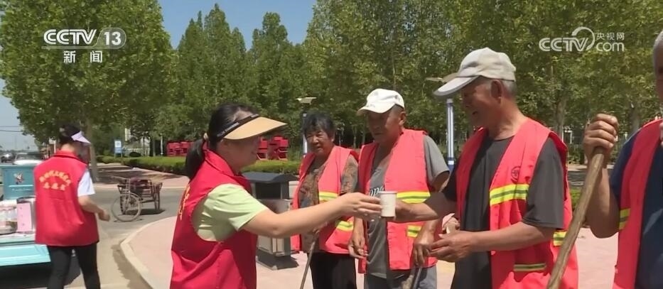 在德州市陵城區(qū),當(dāng)?shù)卦O(shè)置了歇腳驛站,為戶外工作者提供納涼的地方。同時(shí),志愿者們走進(jìn)田間地頭、街頭巷尾,為戶外工作者們送去綠豆湯、礦泉水等解暑降溫物品。